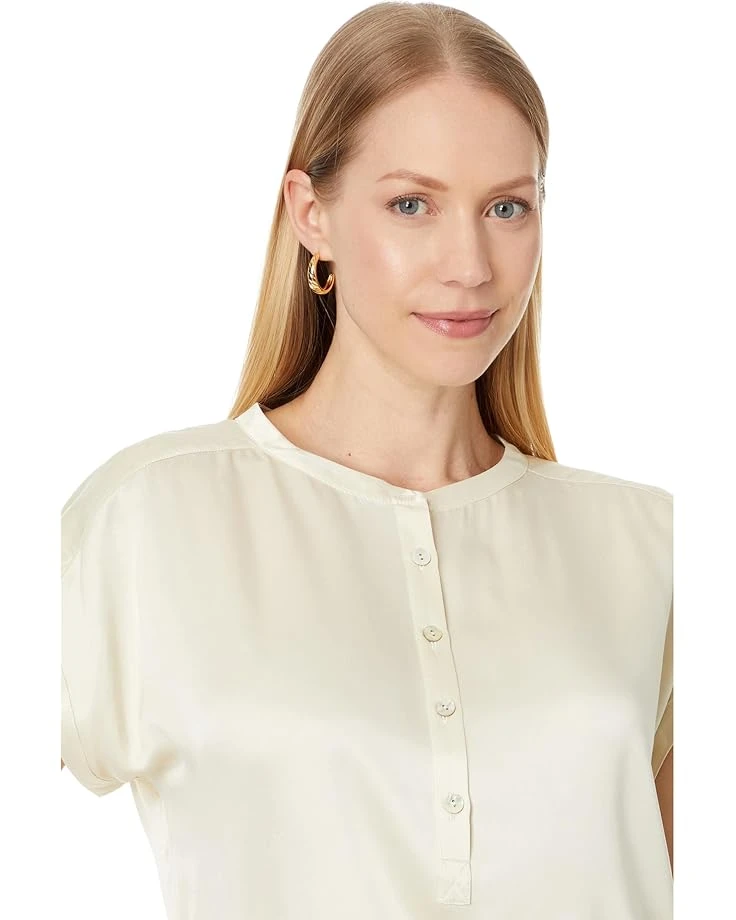 - Classy and stylish, the Fahertyâ„¢ Sandwashed Silk Desmond Top is a must-have in your closet. The pull-on style top has a crew neckline with button-down closure, short sleeves, and a curved shirttail hemline. The regular-fit top works well with the denim jeans or a long skirt for a statement look.