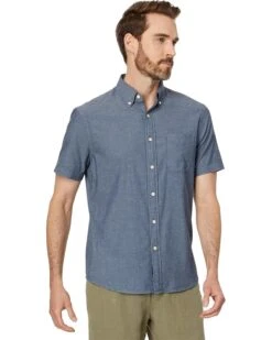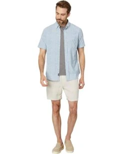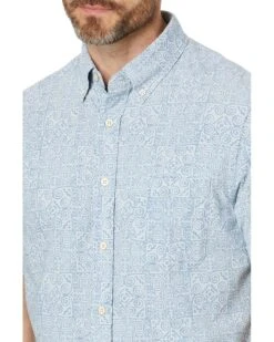 - Dress up your basic weekend look with the Faherty™ Short Sleeve Stretch Playa Shirt. This cotton shirt is constructed with a button-down collared neck, full button front closure, short sleeves, front left chest pocket and finished in an allover fish scale pattern to have your style noticed.